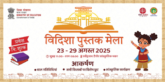 विदिशा जिले में पुस्तक मेला का आयोजन 23 अगस्त से 29 अगस्त तक रविंद्र नाथ टैगोर सांस्कृतिक ऑडिटोरियम भवन में प्रातः 10 बजे से रात्रि 8 बजे तक किया जा रहा है।