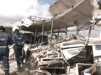 तेलंगाना के रंगारेड्डी जिले में हैदराबाद-बीजापुर नेशनल हाईवे पर सोमवार सुबह गिट्टी से लदे डंपर ने तेलंगाना रोड ट्रांसपोर्ट कॉर्पोरेशन (TRTC) बस को टक्कर मार दी। न्यूज एजेंसी ANI के मुताबिक, हादसे में बस सवार 20 लोगों की मौत हो गई। 20 घायल हैं, 3 की हालत गंभीर है।