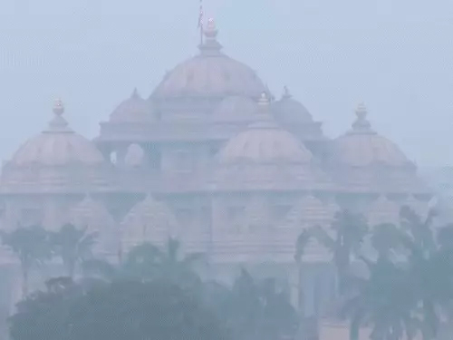 अक्षरधाम मंदिर के पास सड़कों पर विजिबिलिटी कम थी। यहां ज्यादातर इलाकों में सुबह के समय स्मॉग छाया रहा। दिल्ली के ज्यादातर इलाकों में AQI 300 से 400 के बीच रहा। यानी हवा की क्वालिटी ‘बहुत खराब’ से ‘गंभीर’ स्तर पर है।
