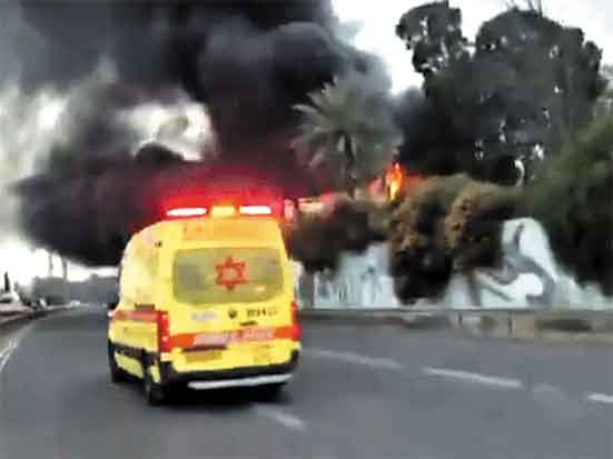 ईरानी हमले के बाद शुक्रवार को सेंट्रल इजराइल के कुछ हिस्से में आग लग गई।