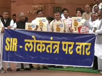 बिहार वोटर वेरिफिकेशन मुद्दे पर विपक्ष के सांसदों ने संसद गेट पर प्रदर्शन किया।