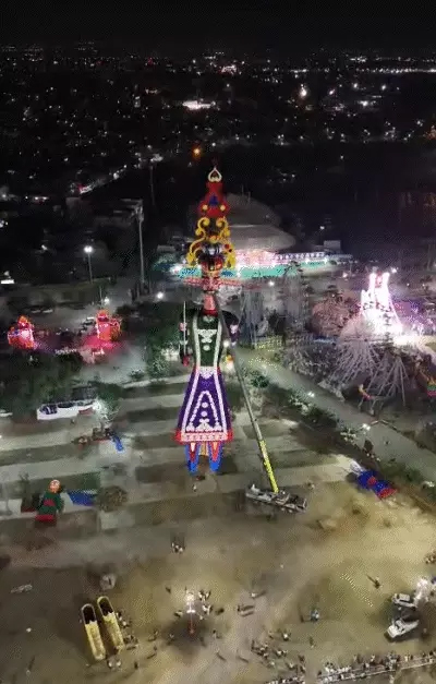 बीती शाम (29 सितंबर) को दशहरा मैदान ग्राउंड में क्रेन की मदद से इस विशालकाय पुतले को खड़ा किया गया। दोपहर करीब 3 बजे से इसके प्रयास शुरू हो गए थे। पूरी तरह पुतले को खड़ा करने में रात के 8 बज गए थे। इसे बनाने में 44 लाख रुपए की लागत आई है।